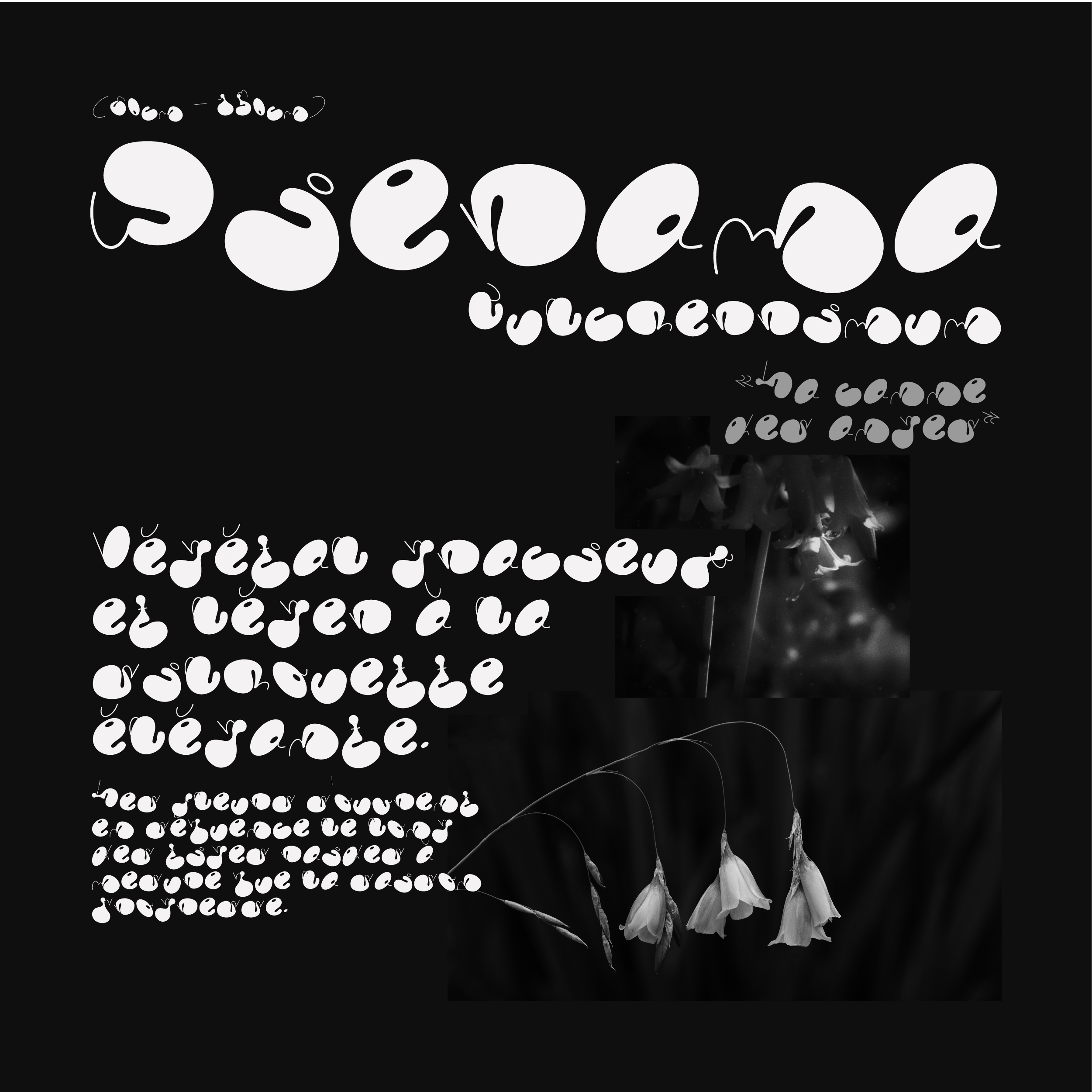 These 15 fonts and accompagnying specimen material have been entirely designed and generated by students during a one-week workshop. They are available under CC BY-ND 4.0 license and as is, without any warranty. Neither Bonjour Monde nor the students shall be held responsible for any issue resulting from downloading and/or using the RandomWiki font files. That said, have fun!