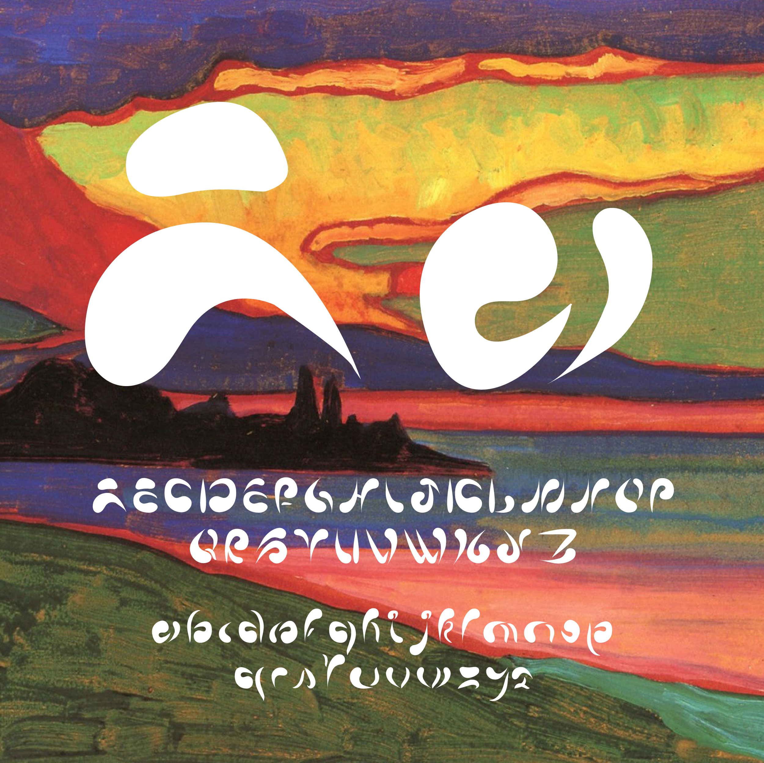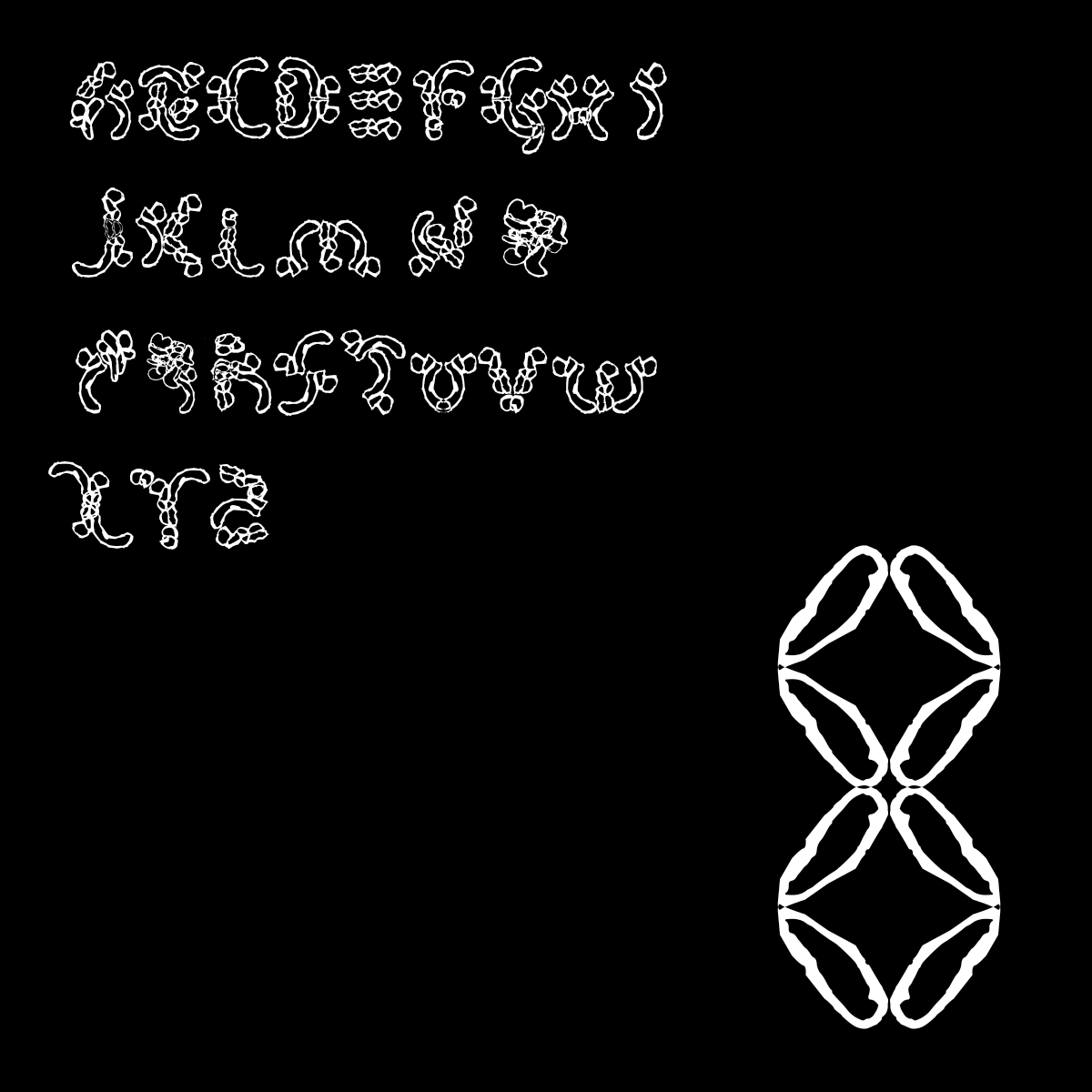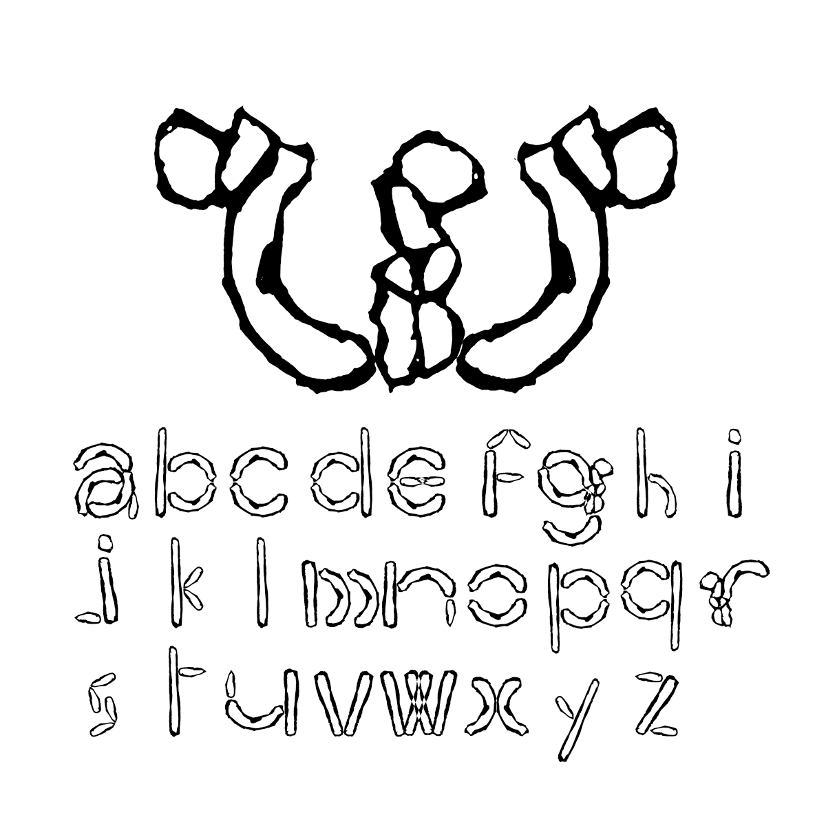 Students were each asked to create a display typeface based on a Wikipedia article chosen at random. In order to get an interesting conceptual distance they first gathered words and images, then explored abstract rhythms by hand.